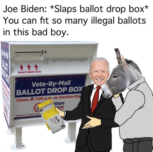 With just a few more days of election Kabuki Theatre, we need to disperse some more election fraud memes with a focus on mail-in voting fraud memes…