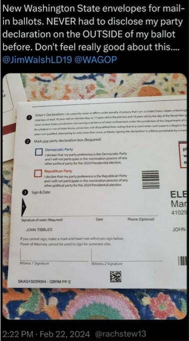 This is not what the Washington State envelopes look like. There is no party affiliation on the envelope anywhere.