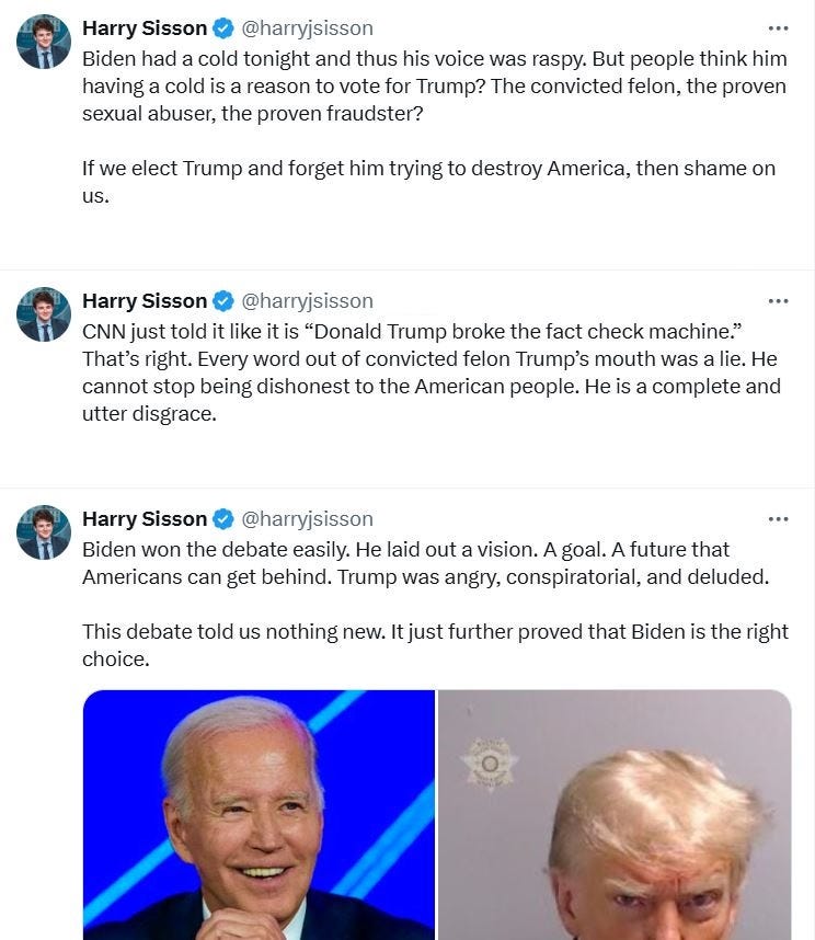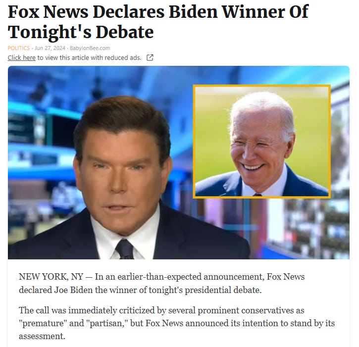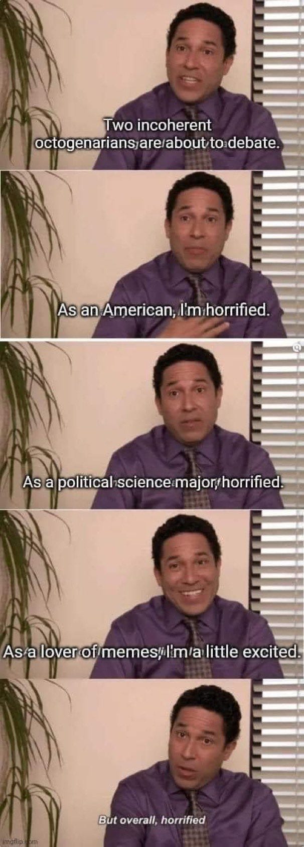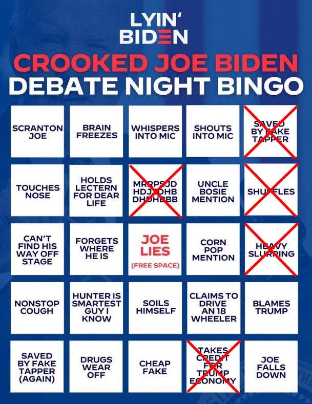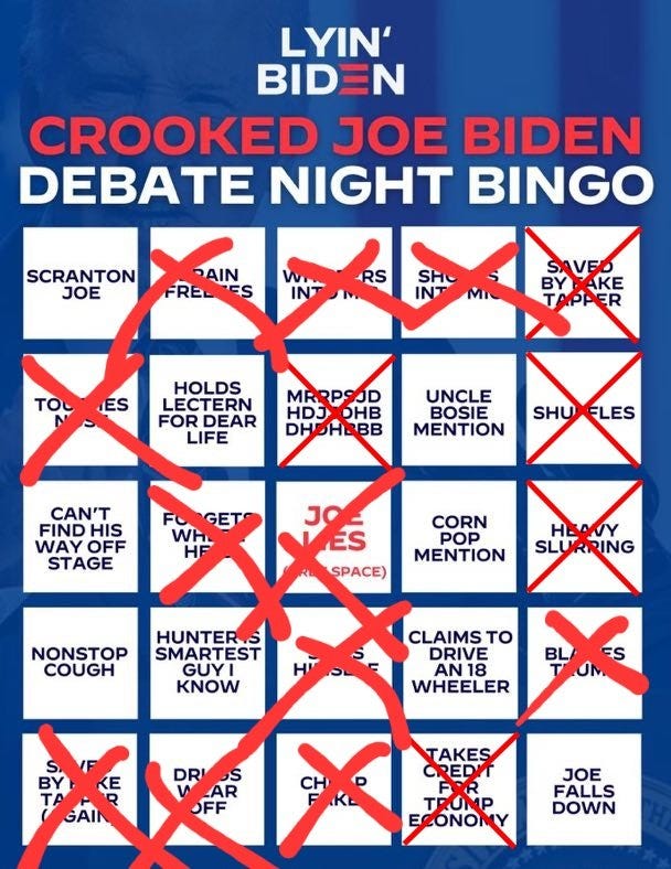 Fox declares Biden the winner, debate drinking game + Bingo, the Adderall wore off, the official debate narrative from Harry Sisson, waiting for the new narrative to drop & more Uniparty debate memes!