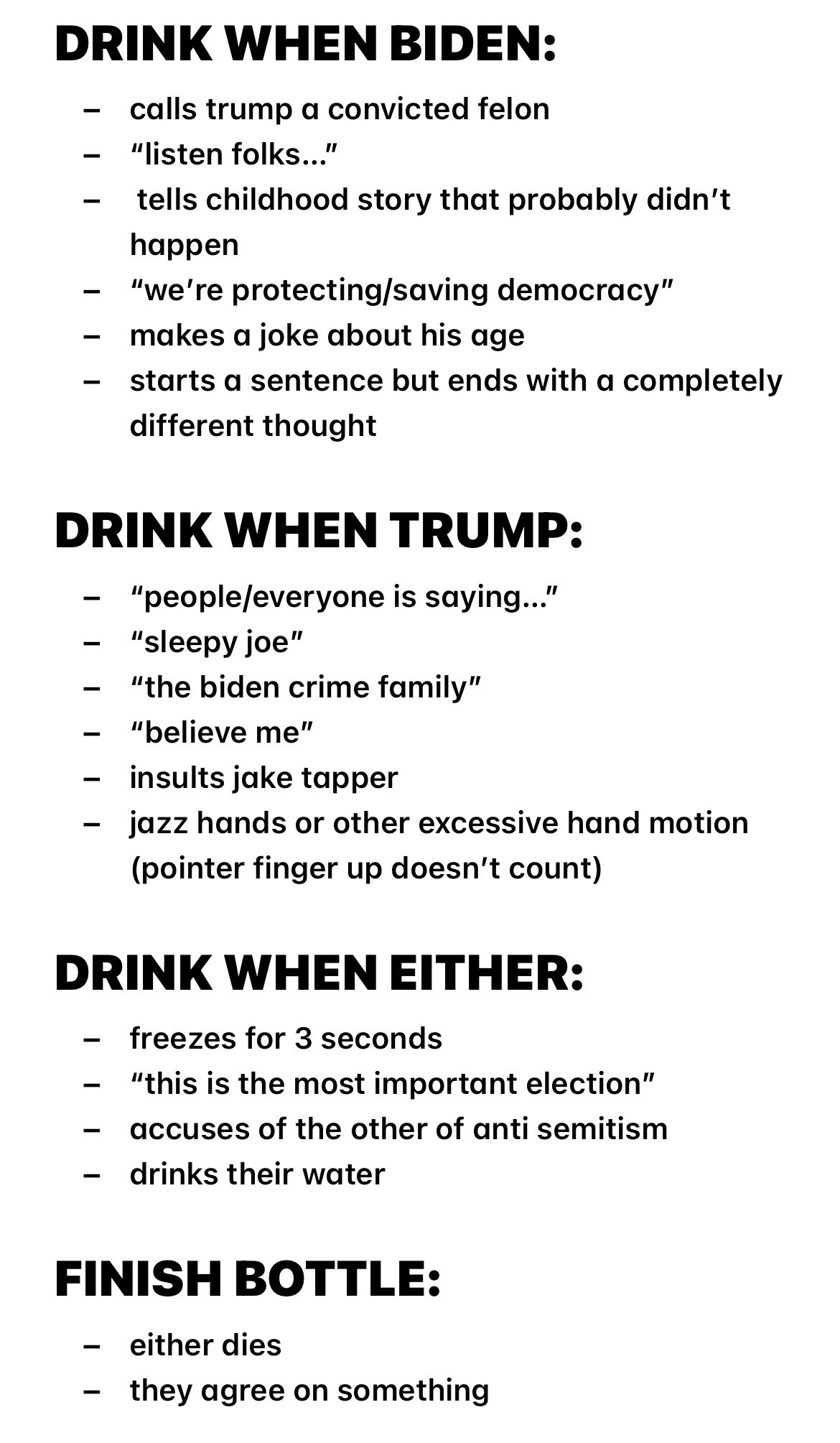 Debate drinking game: