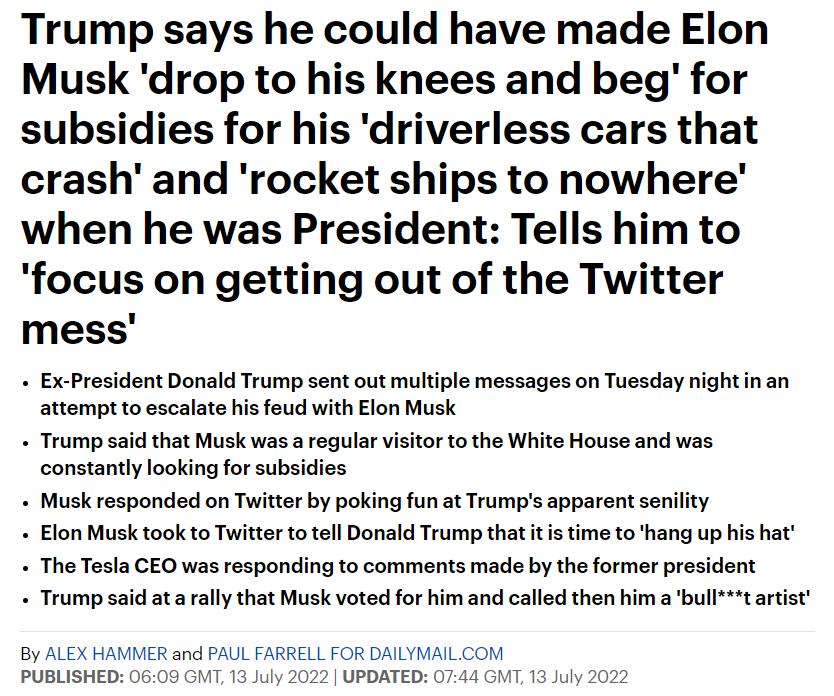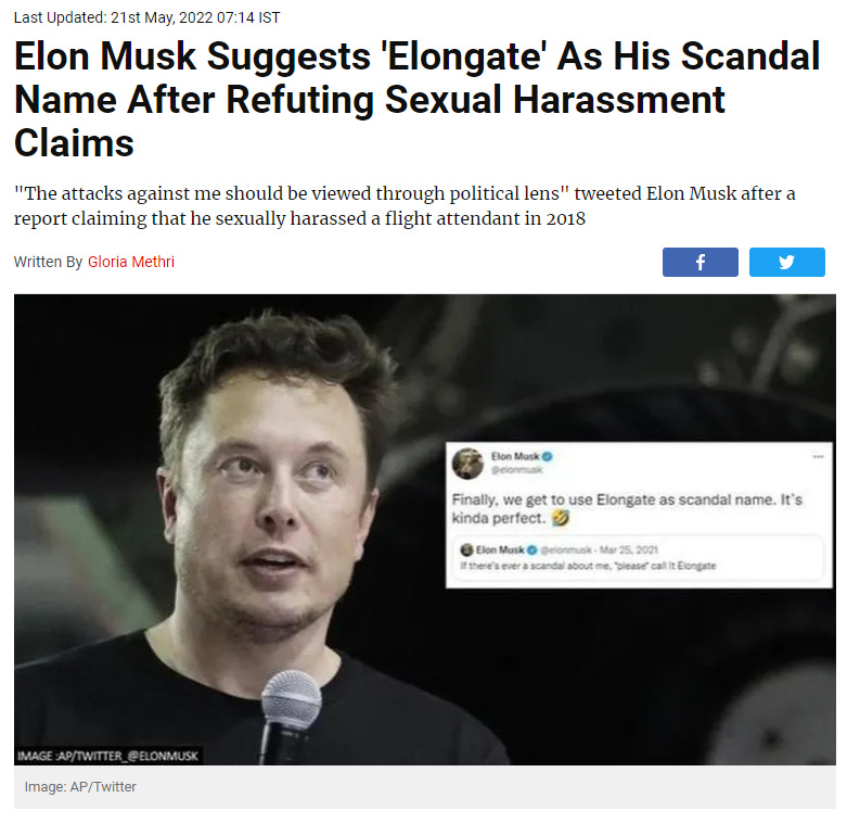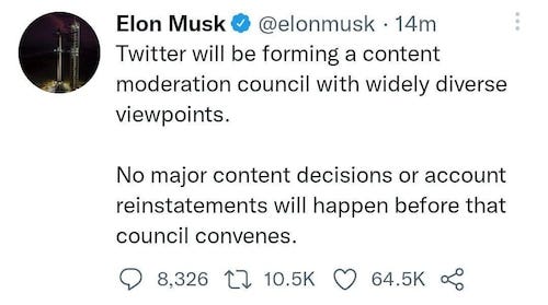 “Suspending the Twitter account of a major news organization for publishing a truthful story was obviously incredibly inappropriate” April 26, 2022 (source)