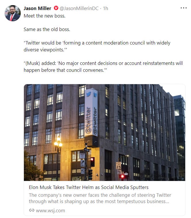 Now that Elon Musk is the Chief Twit at Twitter, there are already changes starting to happen… (Also see: TWITTERsteria: Best Elon Musk Buys Twitter Hypocrisy Memes (End of the Beginning) and TWITTERsteria: More Twitter or Elon Musk Memes (The Mouth of Goebbels!))