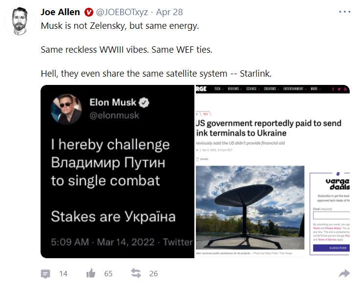 After the memes, I have links to some articles and podcasts to help you decide for yourself what to think of Elon and whether he is a Trojan Horse when it comes to free speech and opposing the Great Reset…