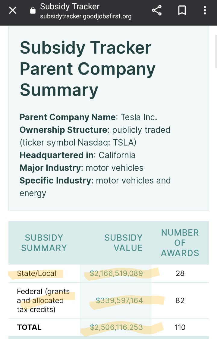 Elon the subsidy queen (and these #s seem low and may not include ones given to taxpayers to buy his junk):