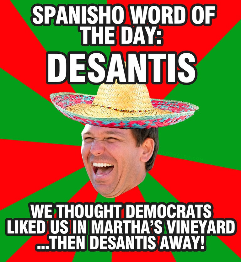 They DeSantis (Spanish word of the day) away, Hurricane DeSantis, I stand with Martha’s Vineyard, they united when faced with diversity and more Martha's Vineyard migrant hypocrisy memes!