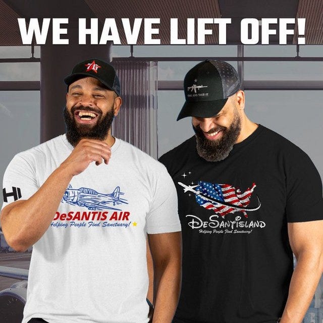 And there are now DESANTIS AIR t-shirts and hoodies available exclusively from shophodgetwins (officialhodgetwins.com):