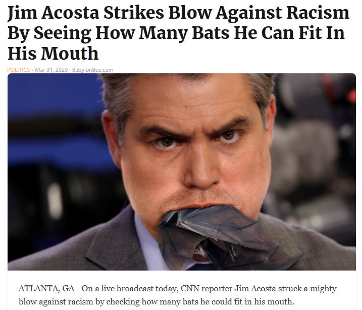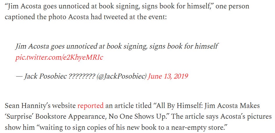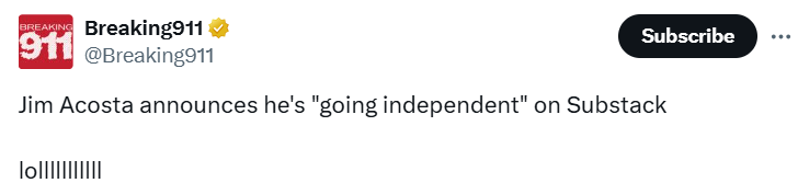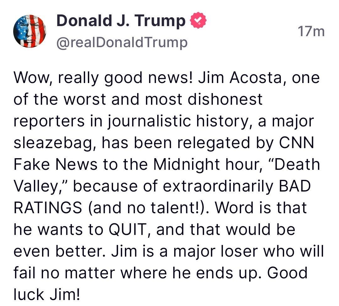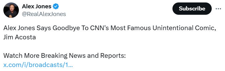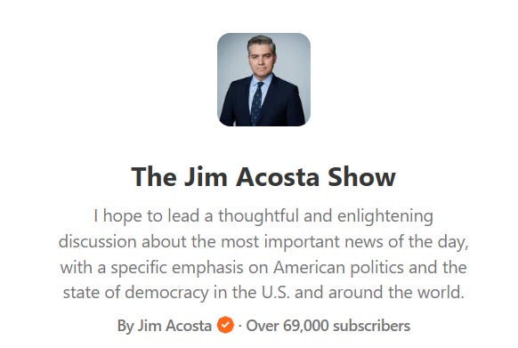 In case you haven’t heard, fakenews’ CNN’s Jim Acosta is joining us here on Substack!: