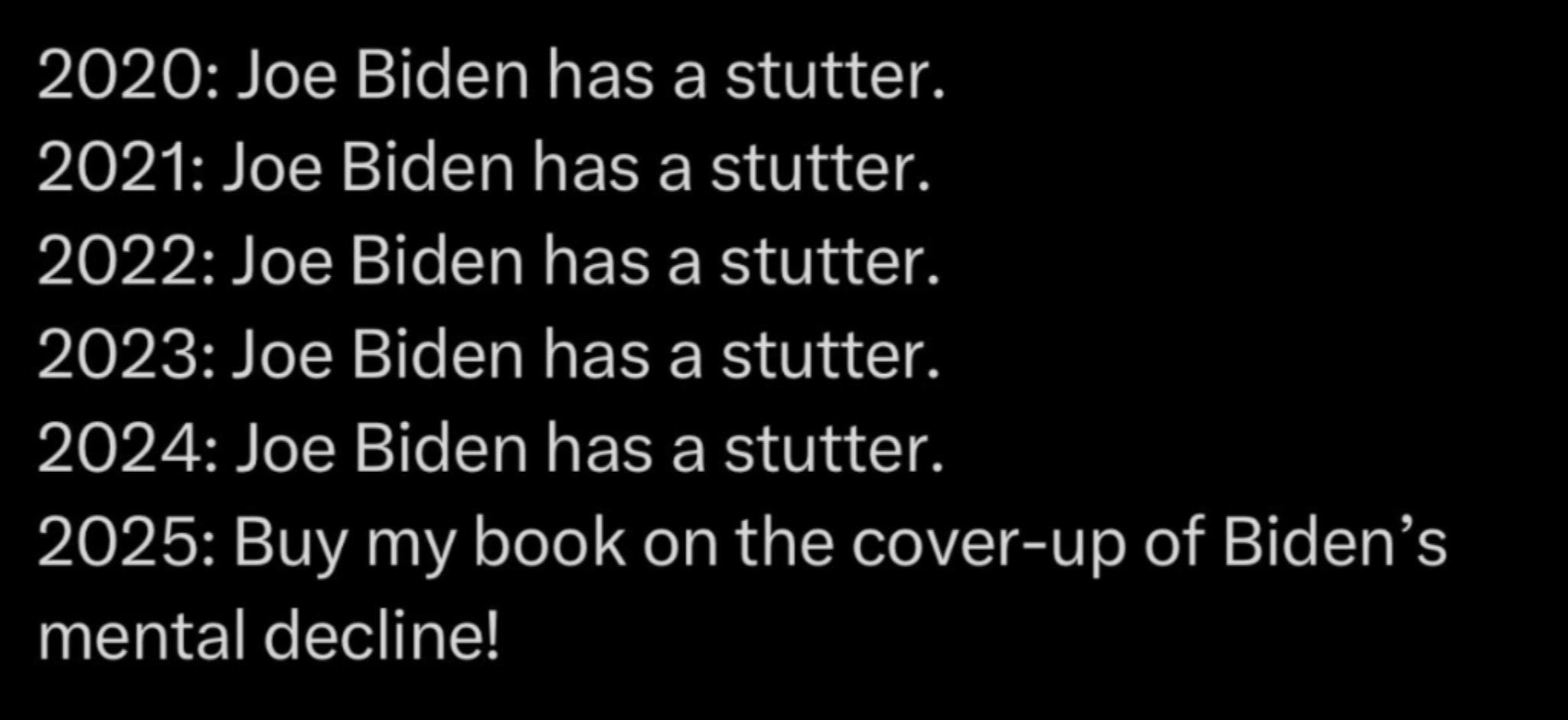 Naomi Biden read this current book and said it was full of lies. She is Joe Biden‘s granddaughter. This book makes me disgusted with Jake Trapper. Why didn’t he write a book about all of Joe Biden‘s accomplishments? He did a lot with infrastructure he created hundreds of thousands of jobs our unemployment was at the lowest he did more than any other president has done. Joe is for all people not just Democrats he is not racist. Does Jake think he would make more money on a book about his decline? I think he needs to write a book about Donald Trump’s mental decline and how they are not doing anything about it. We all see it in his speeches and it’s only going to get worse. Dementia or Alzheimer’s does not get better. Biden is a great man. He cares about our country and the people not like Trump that is destroying our country and the people and our allies. I would vote for Biden any day even if he was in a wheelchair. He’s a better man than Donald Trump. He’s the demented one. Jake Trapper, your disgusting hide behind your lying book. And dating Monica Lewinsky is nothing to brag about.