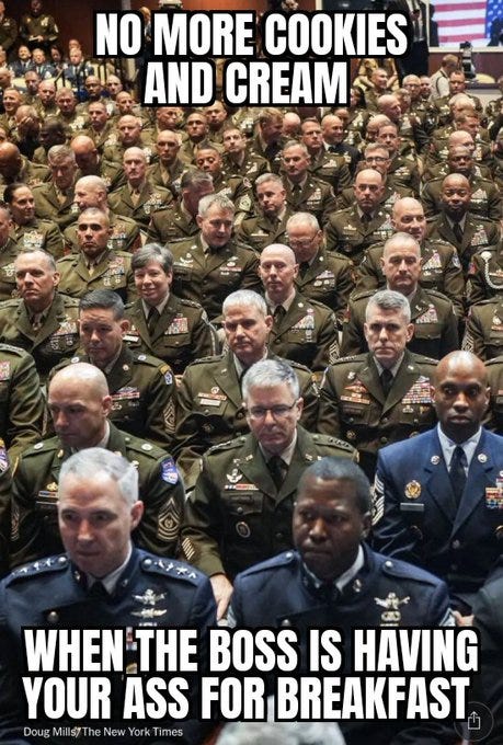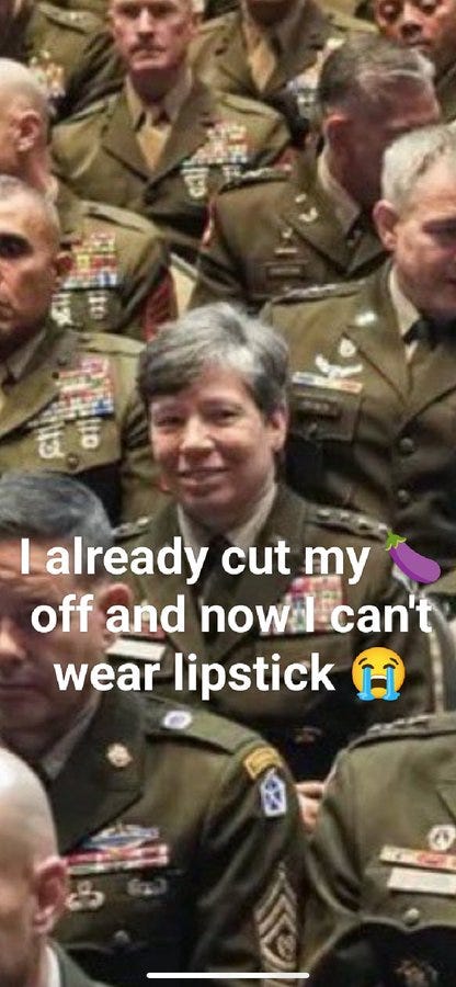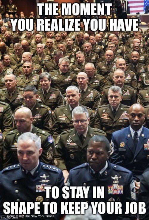 Gonna need more Ozempic, get to know your current fat a** military, they want their dresses/lipstick back, the Biggest Loser (Generals Edition) and more no more fat woke military generals memes!