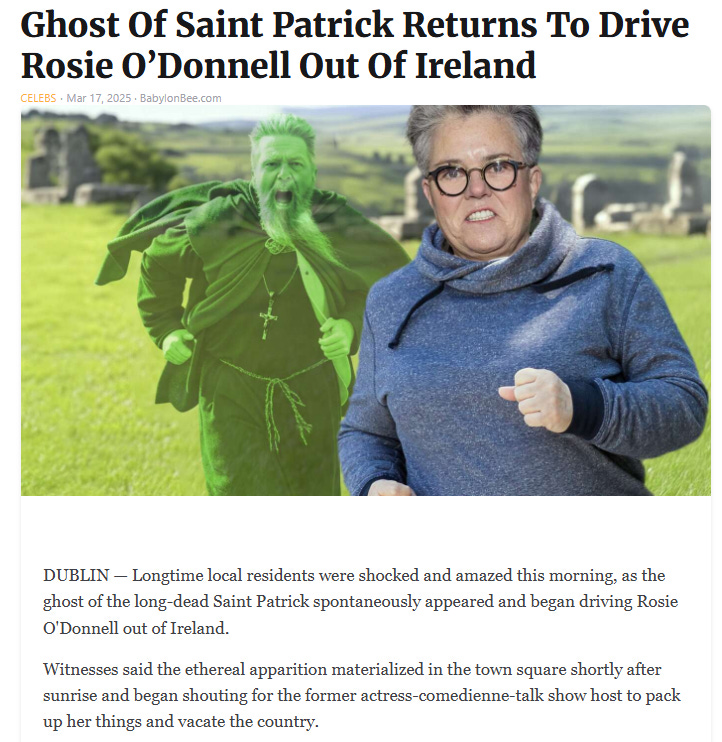 We have covered Ireland, St. Patrick’s Day and Rosie O'Donnell in the past: