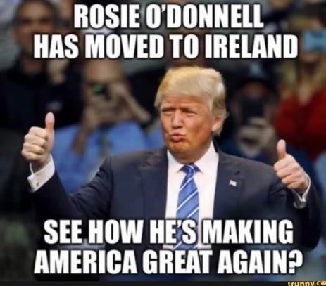 Paging Saint Patrick, no takebacks, she's gonna eat all their potatoes, see how Trump is making America great again and more Rosie O'Donnell moves to Ireland memes - happy St. Patrick's Day!