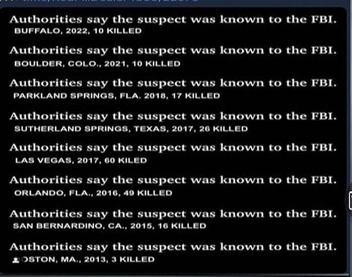 The government (aka the Feds) want mass shootings to occur. So they either sit on their hands OR they actively identify and “groom” the nut jobs who do them in order to take away more of our freedoms and rights…