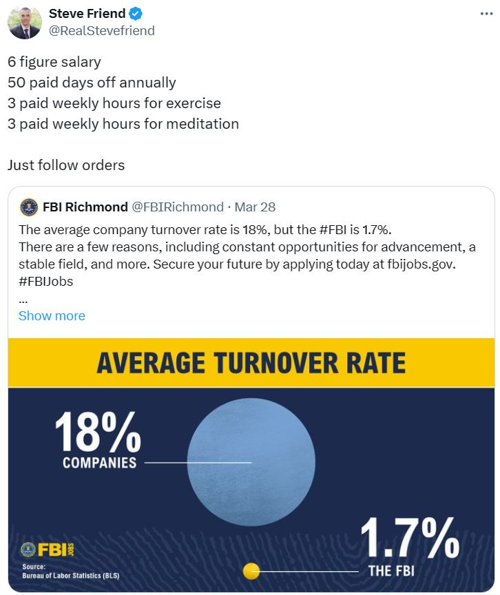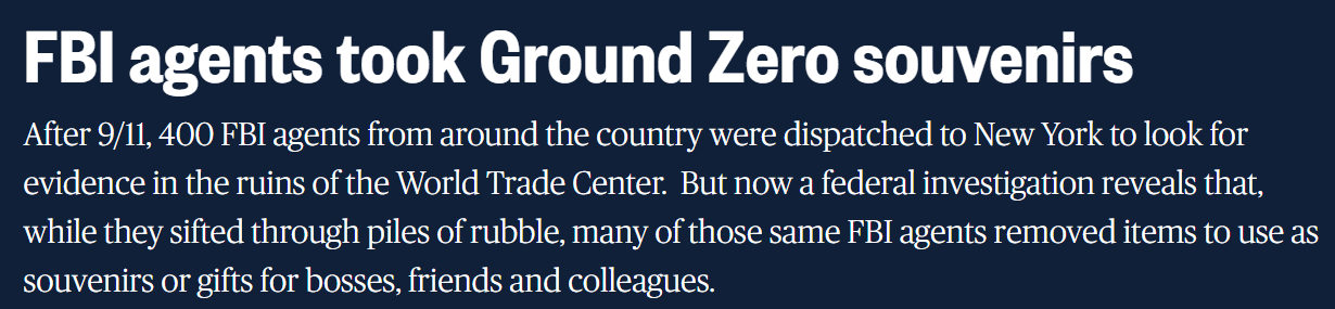 How low the FBI will go (stealing 9/11 ground zero debris for souvenirs), guess who was colluding with Russians, adding context to FBI tweets, how the FBI operates, 1.7% turnover and more FBI memes!