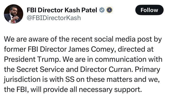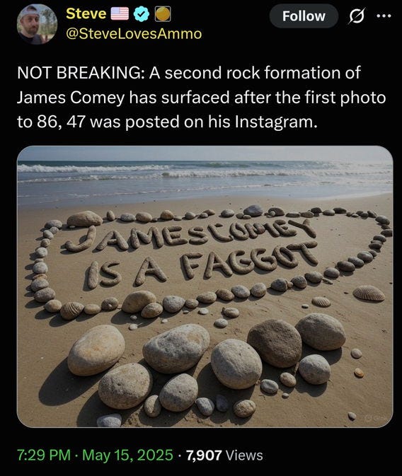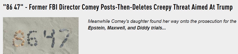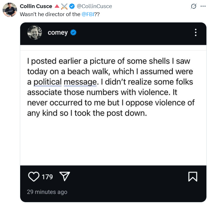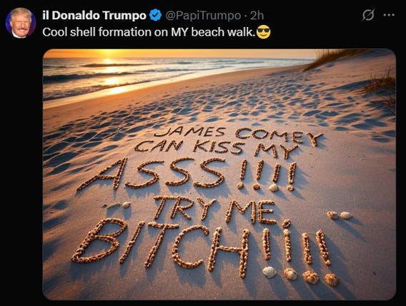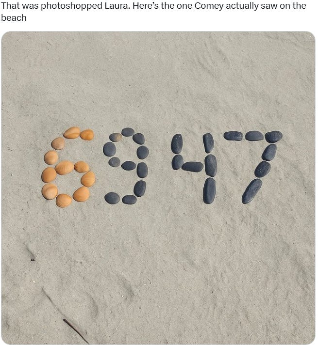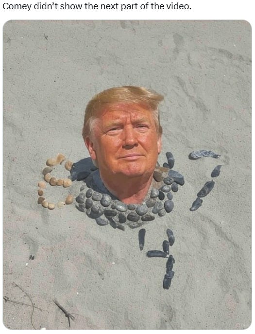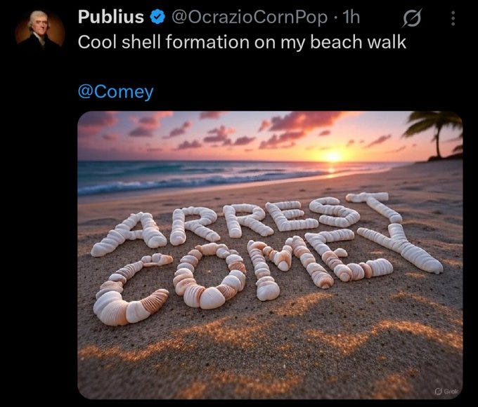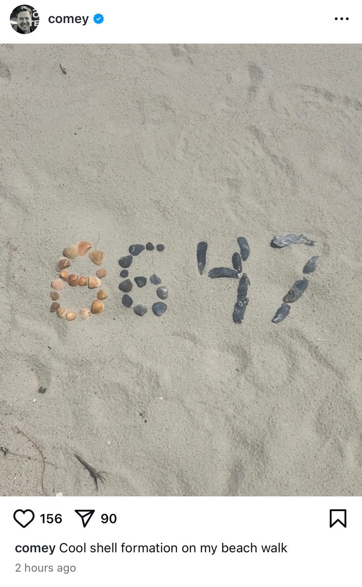 Paging Pam Bondi, from arresting political opponents to calling for their assassination, domestic enemy, cool shell formations on my latest beach walk and more James Comey threatens to 86 47 memes!