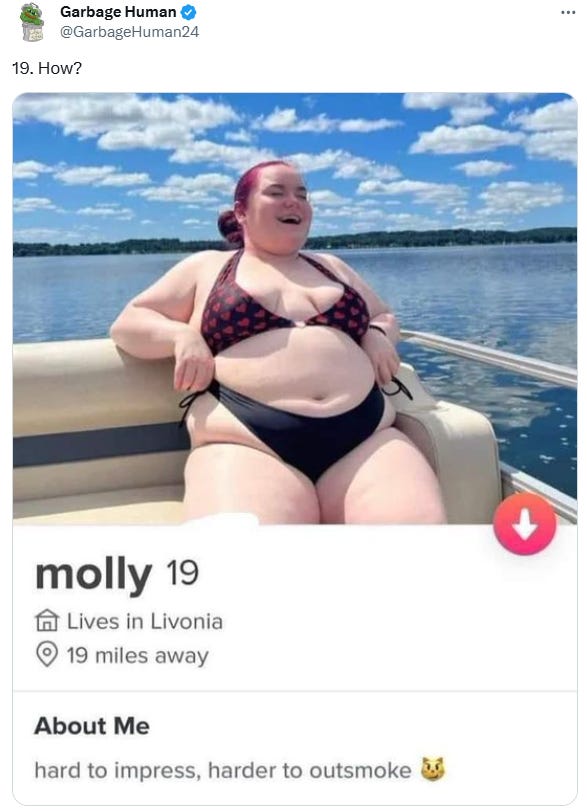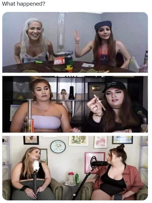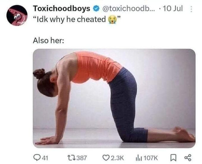 Most funny yet sad. I hate to admit it but I don't know what the joke is regarding the woman in the yoga cat pose.