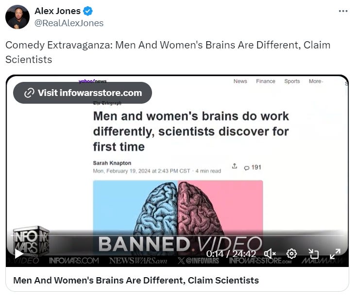 Alex Jones had some fun with the study and talking about how men and women are different: