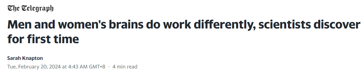 men are from Mars, women are from Venus.... that book came out at least 40 years ago I think. I am sure every single normal person and every single animal knows that males and females think different. But scientists only discovered that now??? OMG it has been a while since I laughed this hard!