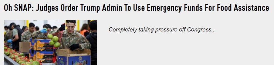 …. But then some unelected district judge just waved a magic gavel and ordered the US Department of Agriculture to distribute a pool of contingency funds “as soon as possible...:”