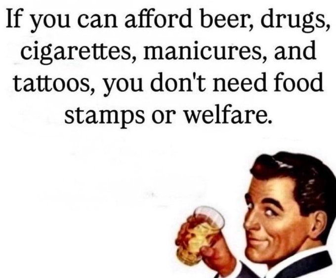 My husband is a schoolteacher, and we have six children… we were on the WIC program about 15 years ago for a couple of years… Milk, eggs, and cheese… it was not a lot, but It helped out with our expenses greatly, because anything was better than nothing… BUT, One of the things I noticed when we would go into the health department to recertify was that the people sitting in there in the waiting room with me had nice cars… An iPhone… Nice clothes… 🤨🤨🤨 We couldn’t afford a phone, let alone an iPhone. We had an old jalopy of a car. We had clean clothes, not fancy designer clothes.