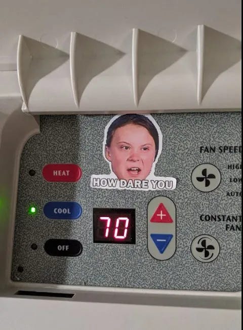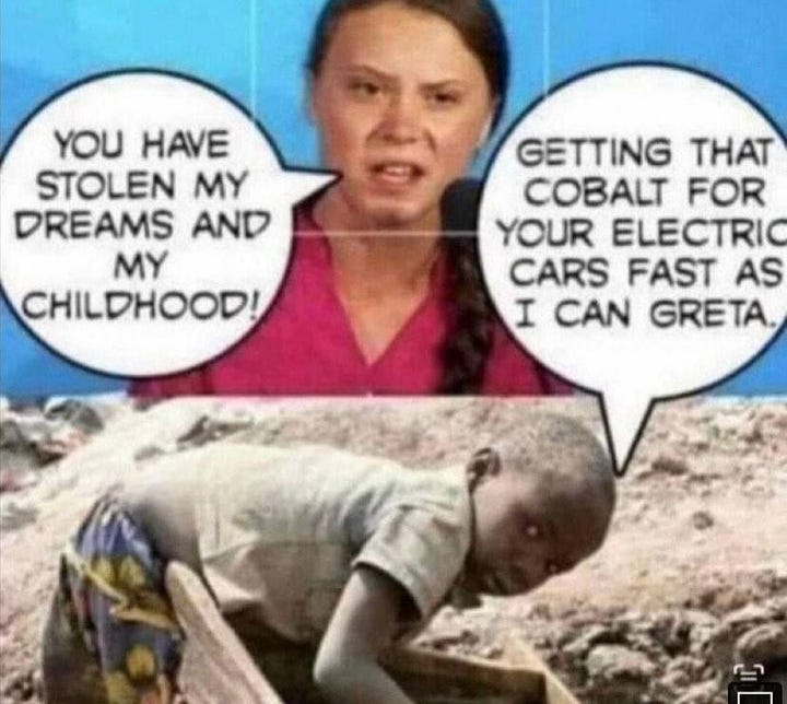 Here are some Greta Thunberg to make you even hotter under the collar - like a kid working in a cobalt mine…
