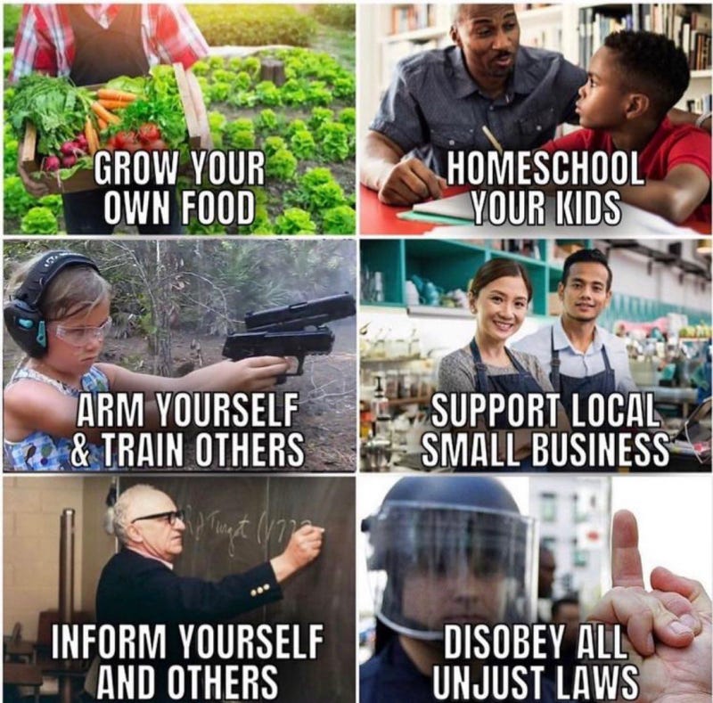 Move away from the baseline of idiots, intelligent disobedience, mass noncompliance, wise words from Tesla + MLK, I support the opposite of the current thing and more Great Reset resistance memes!