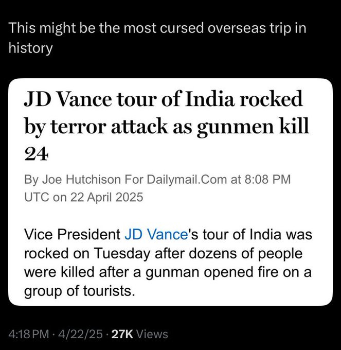 I happen to like JD Vance as he seems pretty genuine… However, he’s fast turning into Hillary Clinton the Grim Reaper with a growing body count: