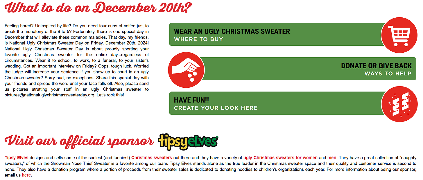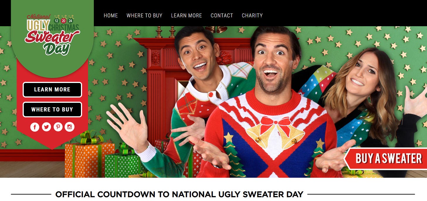 National Ugly Christmas Sweater Day was Friday, December 20th, 2024 and unfortunately, we missed celebrating it: