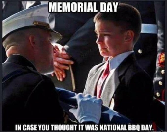 And now for some largely non-political Memorial Day memes - the same ones we did last year…