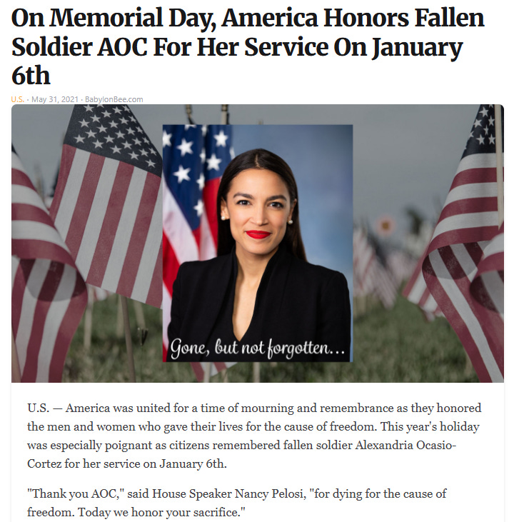 Today is Memorial Day or Memorial Day weekend and just in case you forgot what the holiday is all about: