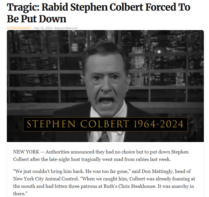 I am sure Colbert will land on his feet:
