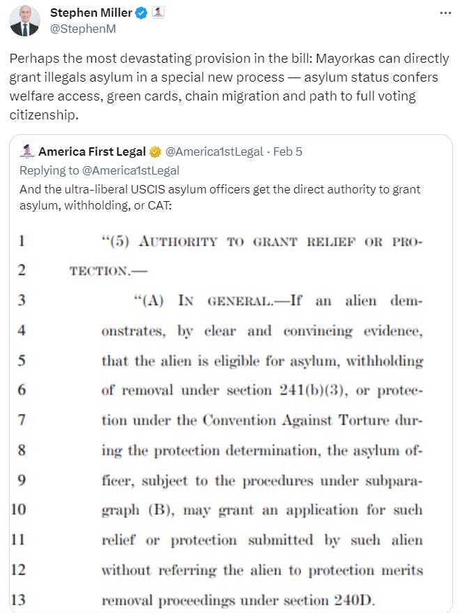 The border bill (full text) looks so awful that even members of the GOP wing of the Uniparty are getting cold feet and backing off: