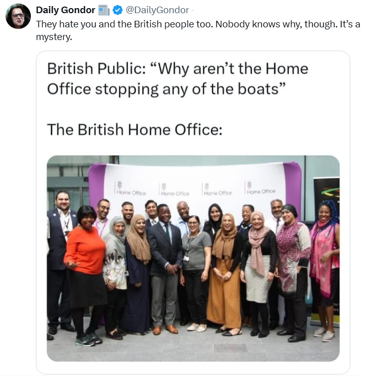 But is sure looks like the great replacement theory has already happened over at the British Home Office: