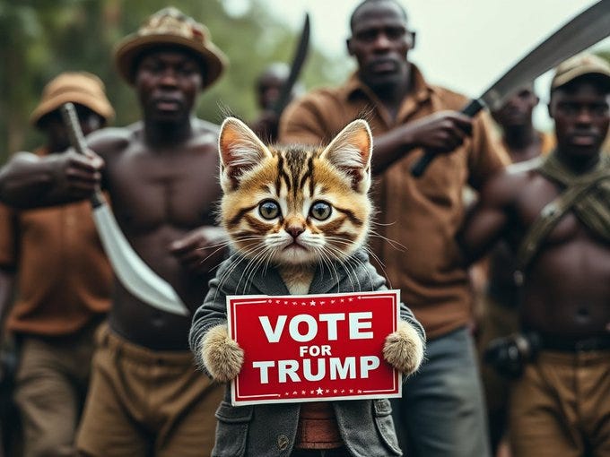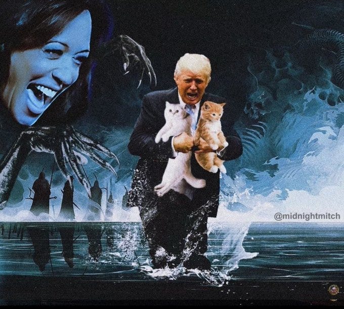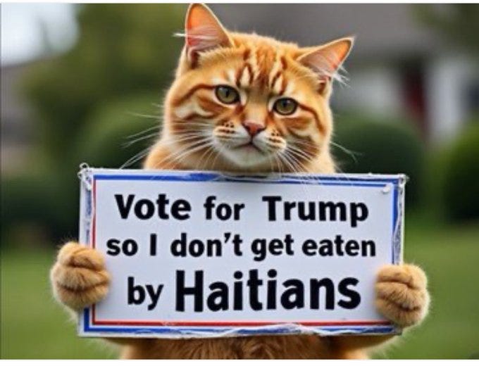 Let them eat cats, a cat in every pot, MAGA cats (Fight! Fight! Fight!) no one was eating cats when you know who was President, Trump can grab p*ssy any time and more Haitians eating cat memes!
