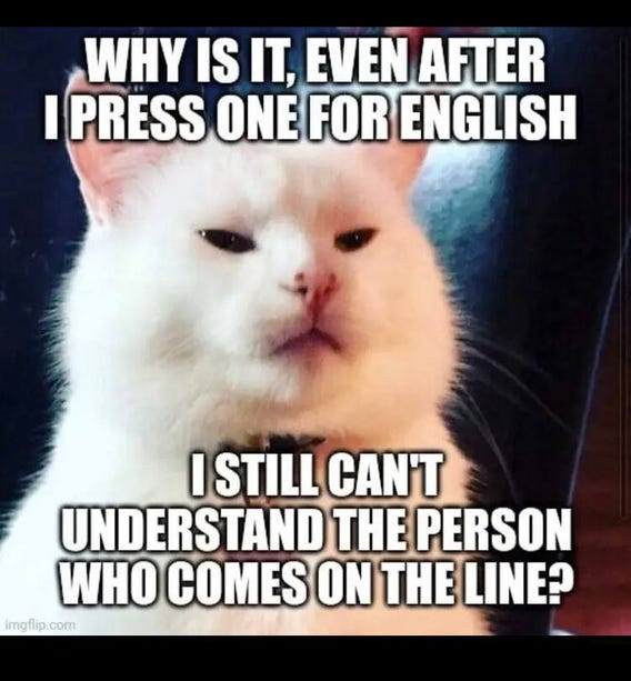 And don't you just hate that the person on the other side has an even worse accent than you? Or that you, after holding for half an hour listening to muzak, have to hang up because you don't understand the employee? PS. I will gladly pay a dollar more for strawberries grown close to home and harvested by local people.