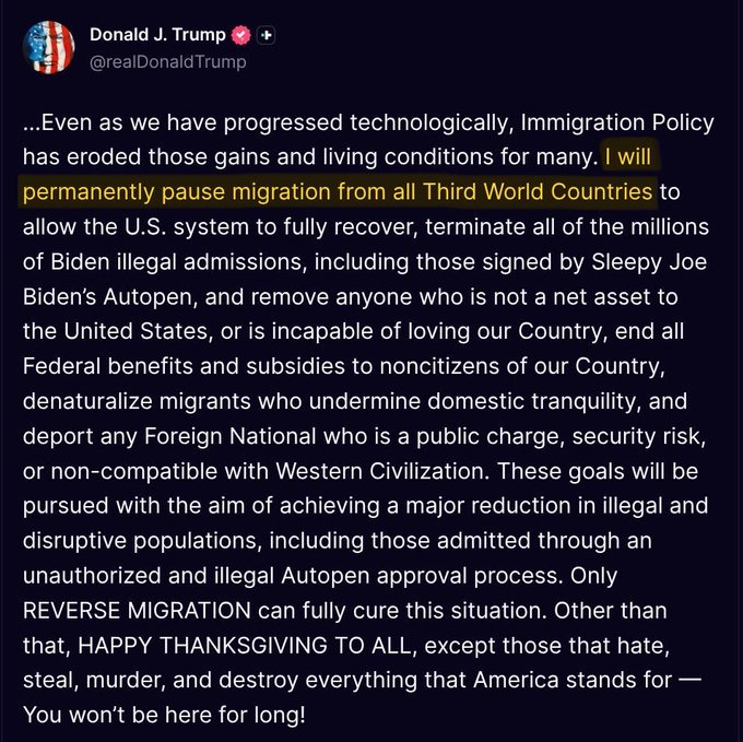 Trump has FINALLY decided to pivot back towards his voters to do what he was elected to do with this announcement concerning immigration from third world countries: