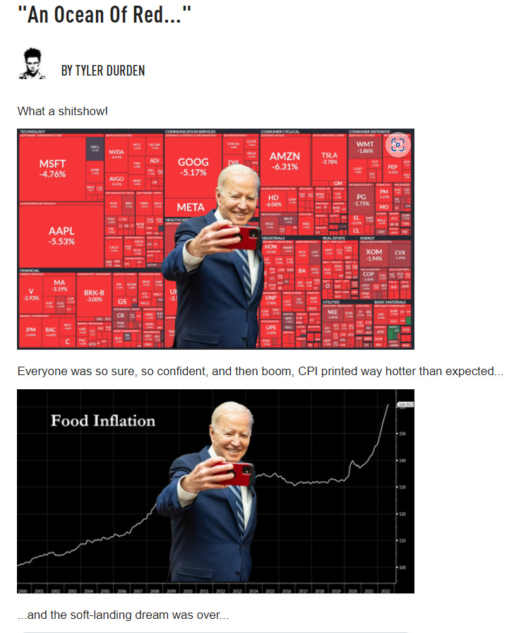 Yesterday’s inflation numbers and the stock market’s performance were a sh*tshow as Zero Hedge ("An Ocean Of Red...") points out: