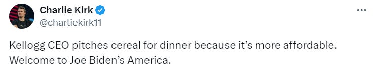 How bad is inflation and how out of touch is our ruling class? The CEO of Kellogg just suggested Americans should eat cereal for dinner: