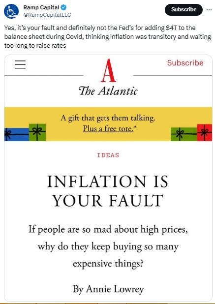 Inflation is your fault (The Atlantic), guess who is not struggling to pay rent or buy groceries, food is eating people's incomes and more inflation memes as Kellogg's CEO tells ém to eat cereal!