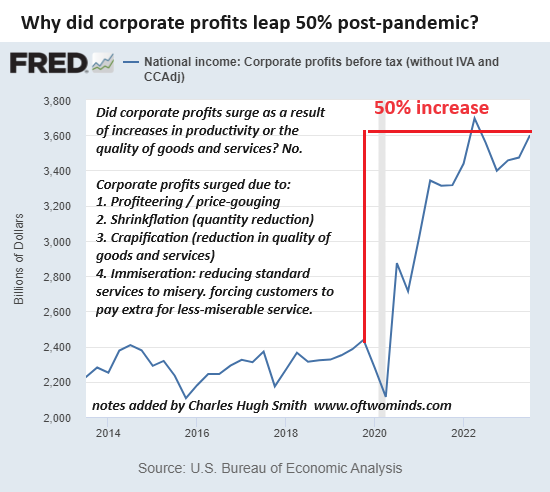 This is a good piece and later noted the corporations selling junk products and services are doing just fine: