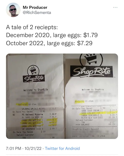 Those two Shop-Rite receipts showing the price of eggs???? Ho-lee crap.