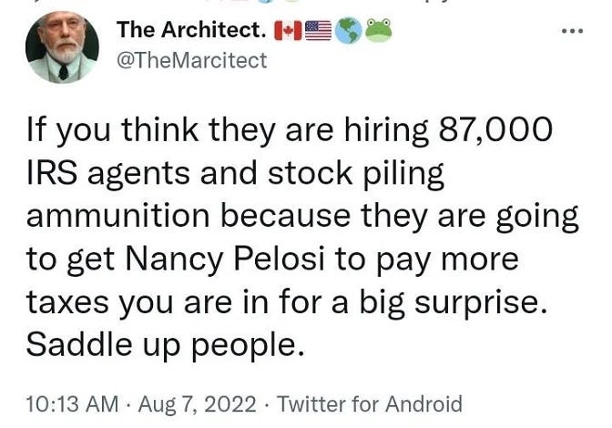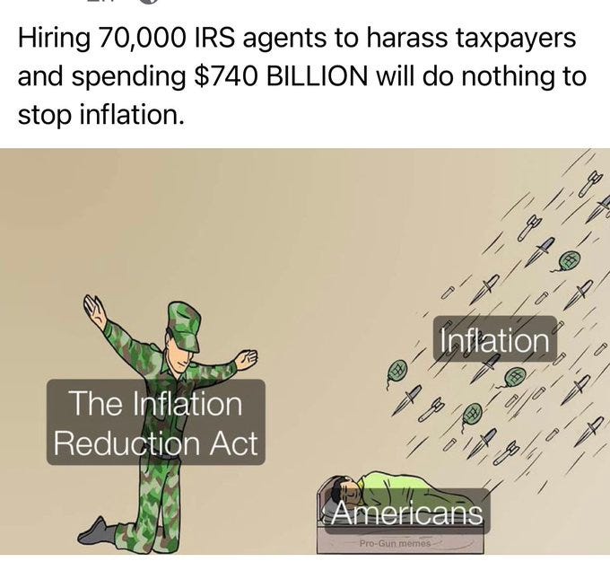 Keep pouring it on, Orwell saw this coming, IRS is hiring people who need to be willing to use deadly force, and more Inflation Reduction Act memes as the USA goes full Louis XVI!