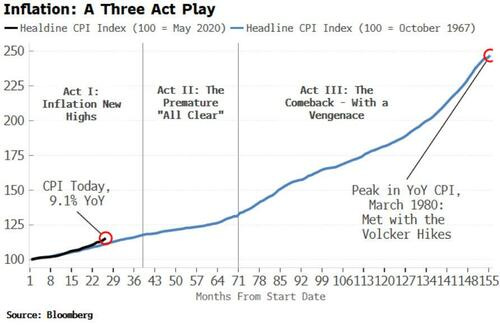 …We are now in Act I, where inflation is high and rising. We will soon enter Act II, where a respite in inflation hoodwinks the Fed into believing it can take its foot off the tightening pedal prematurely. This sets the stage for Act III, where price growth stops falling, and takes off again, this time making new highs…