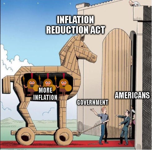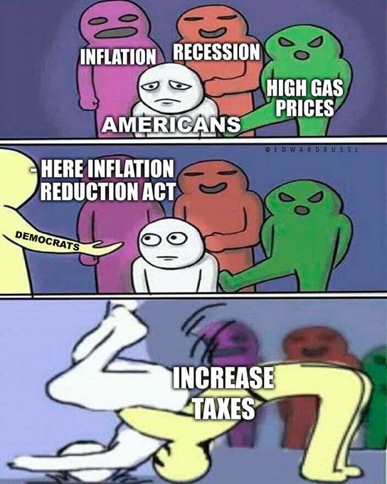 The Regime continues to go full Orwell to make inflation great again with the so-called Inflation Reduction Act. But before we get to the memes, consider this article from SoverignMan that was also posted on Zero Hedge about where we are heading: