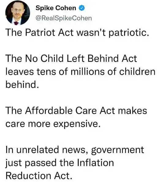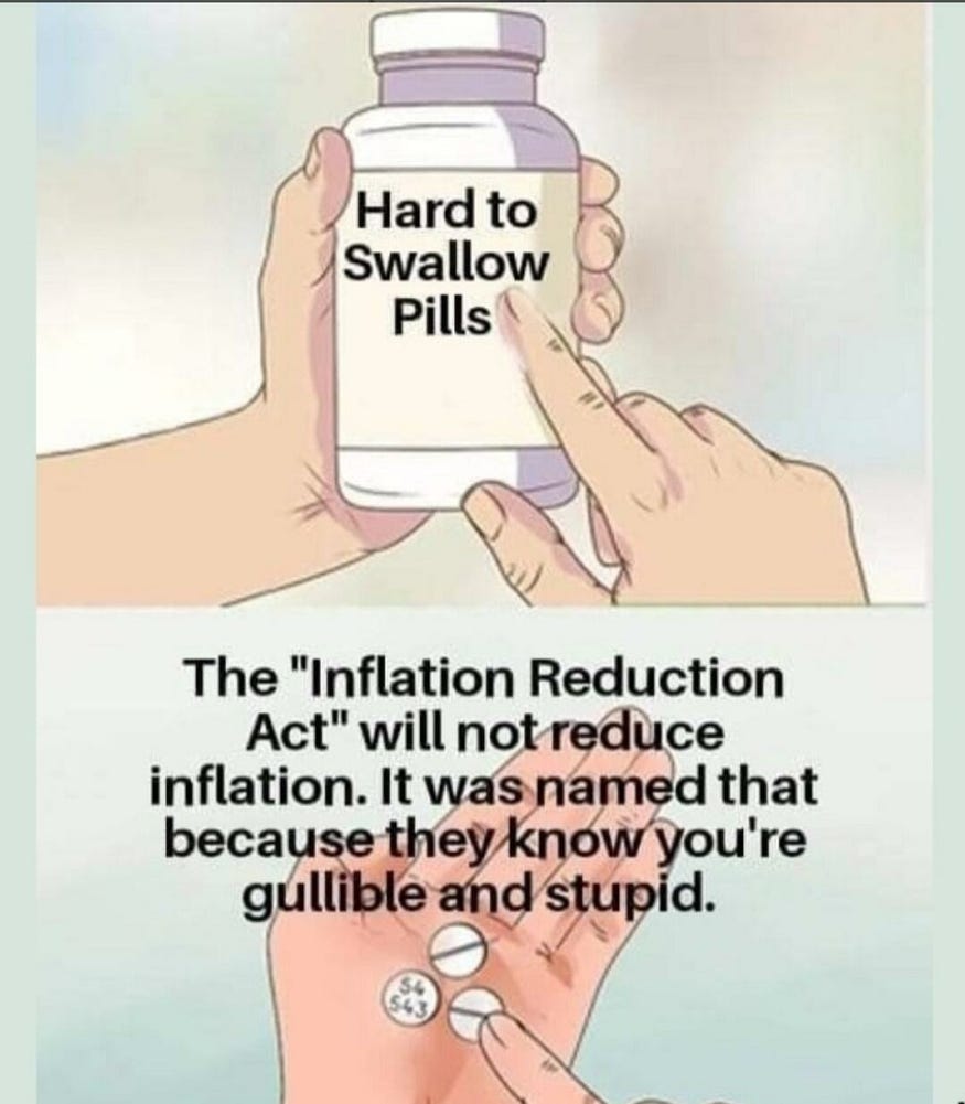 Some animals are more equal than others, bill naming conventions (b/c they think you are stupid) and patterns, their priorities and more Inflation Reduction Act + Omnibus Spending Bill memes!