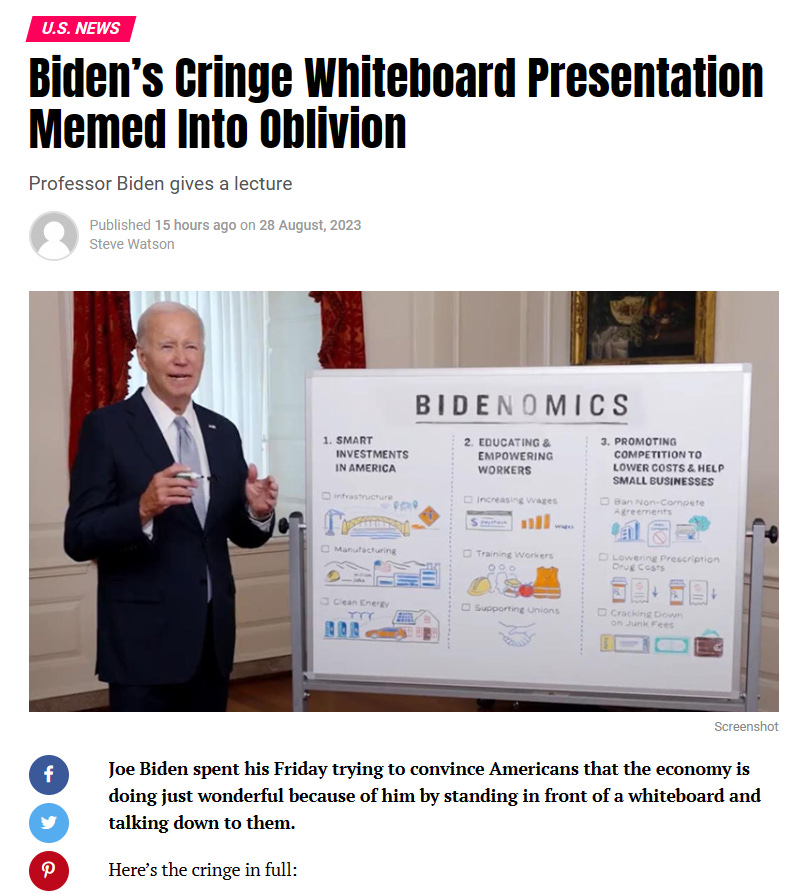 President Pedo Pete Biden recently gave a whiteboard presentation about Bidenomics: