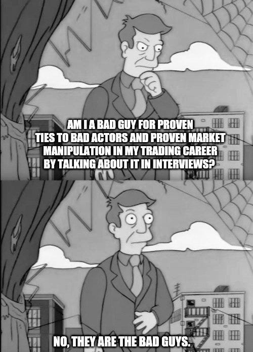So many unanswered questions [see the Wikipedia entry: https://en.wikipedia.org/wiki/Jim_Cramer#Admission_of_market_manipulation]:
