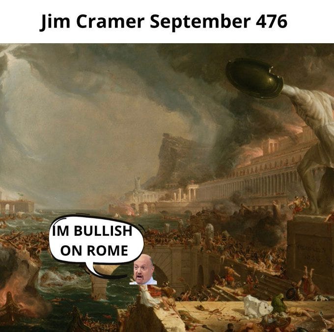 If Jim Cramer was in Rome back in 476AD, you know he would be saying “buy the dip:”