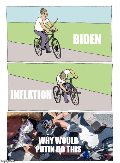 Its all Putin’s FAULT, Build Back Better summed up, the economy has fallen and can’t get up, meanwhile in Russia/China/North Korea and more Biden falls off his bike memes!