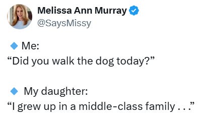 Did you know that Kamala comes from a middle class family? That, or some variation of that phrase, is her answer for every question: