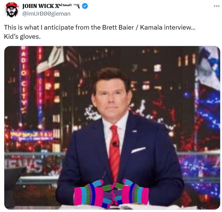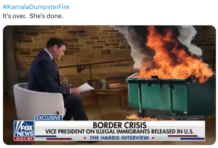 #KamalaDumpsterFire is trending on Twitter after Kamala went on FOX news and unexpectedly got Brett Baier to actually ask her real questions…: